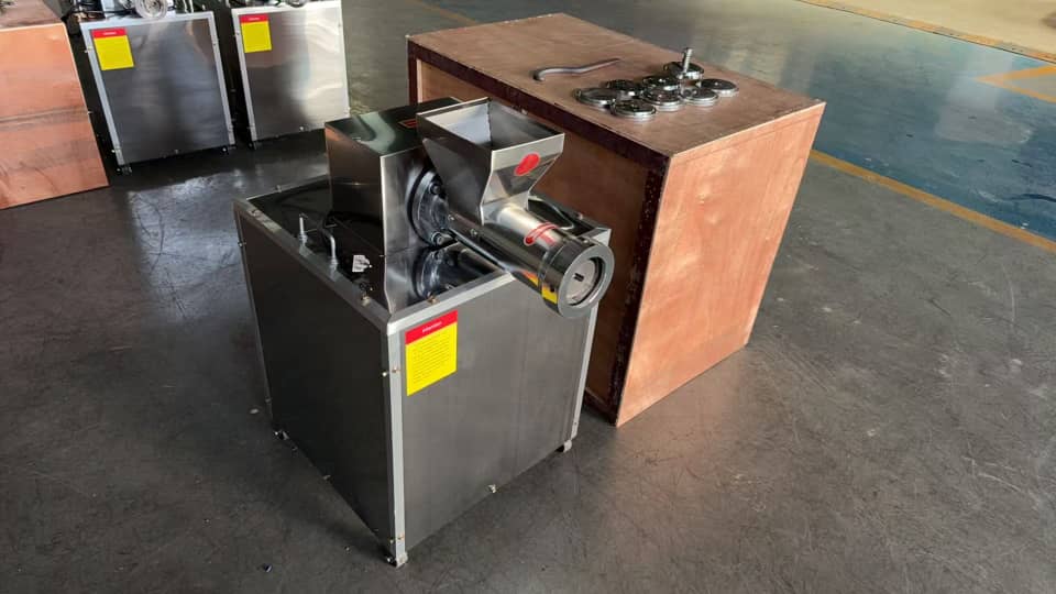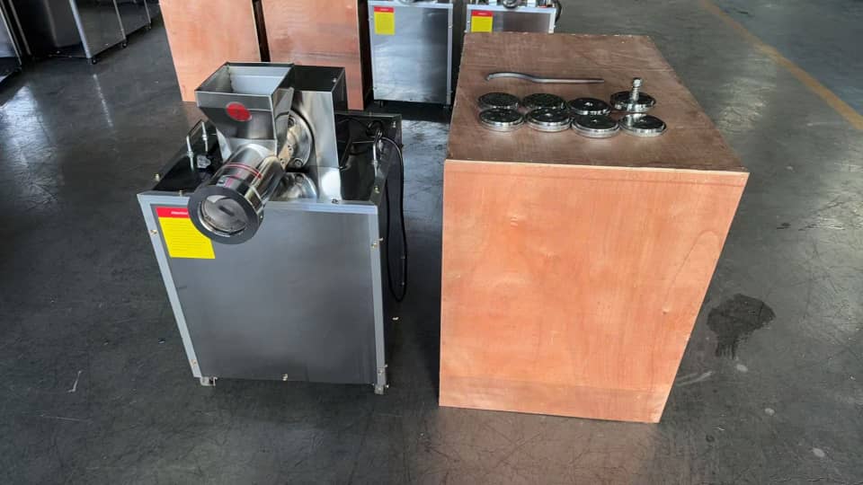 Nowa, elektryczna maszyna do produkcji makaronu – profesjonalne urządzenie do wytwarzania świeżego makaronu: spaghetti oraz innych kształtów (w zależności od zastosowanej matrycy). Maszyna przeznaczona do restauracji, manufaktur makaronu, cateringu, kuchni produkcyjnych oraz małych i średnich zakładów przetwórstwa spożywczego.